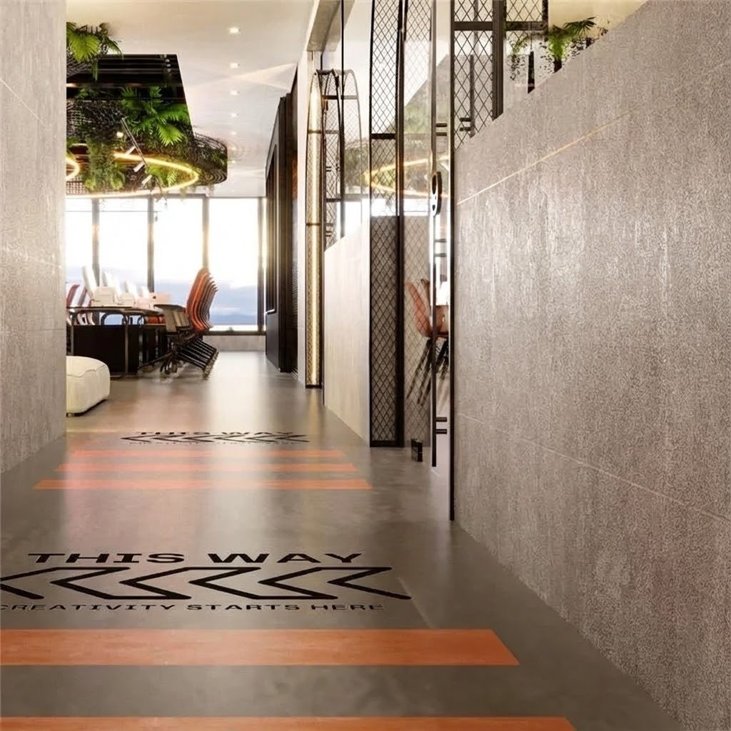 Spanning 1,200 square meters, the project embraces an Industrial Style with a Dark Mode theme, complemented by colorful accents, cultural lighting, and greenery to break the