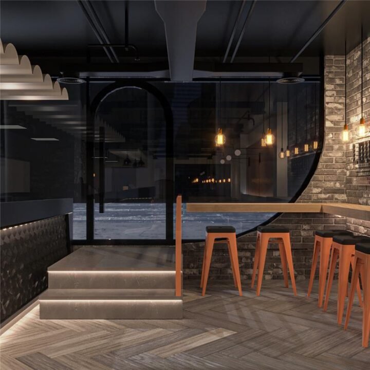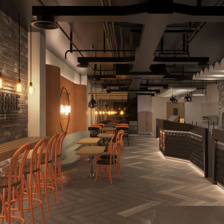 النتيجة هي مطعم وجبات سريعة ديناميكي وجذاب، يجمع بين التصميم، العملية، وهوية العلامة التجارية، ليخلق بيئة فريدة ومرحبة لجميع العملاء.